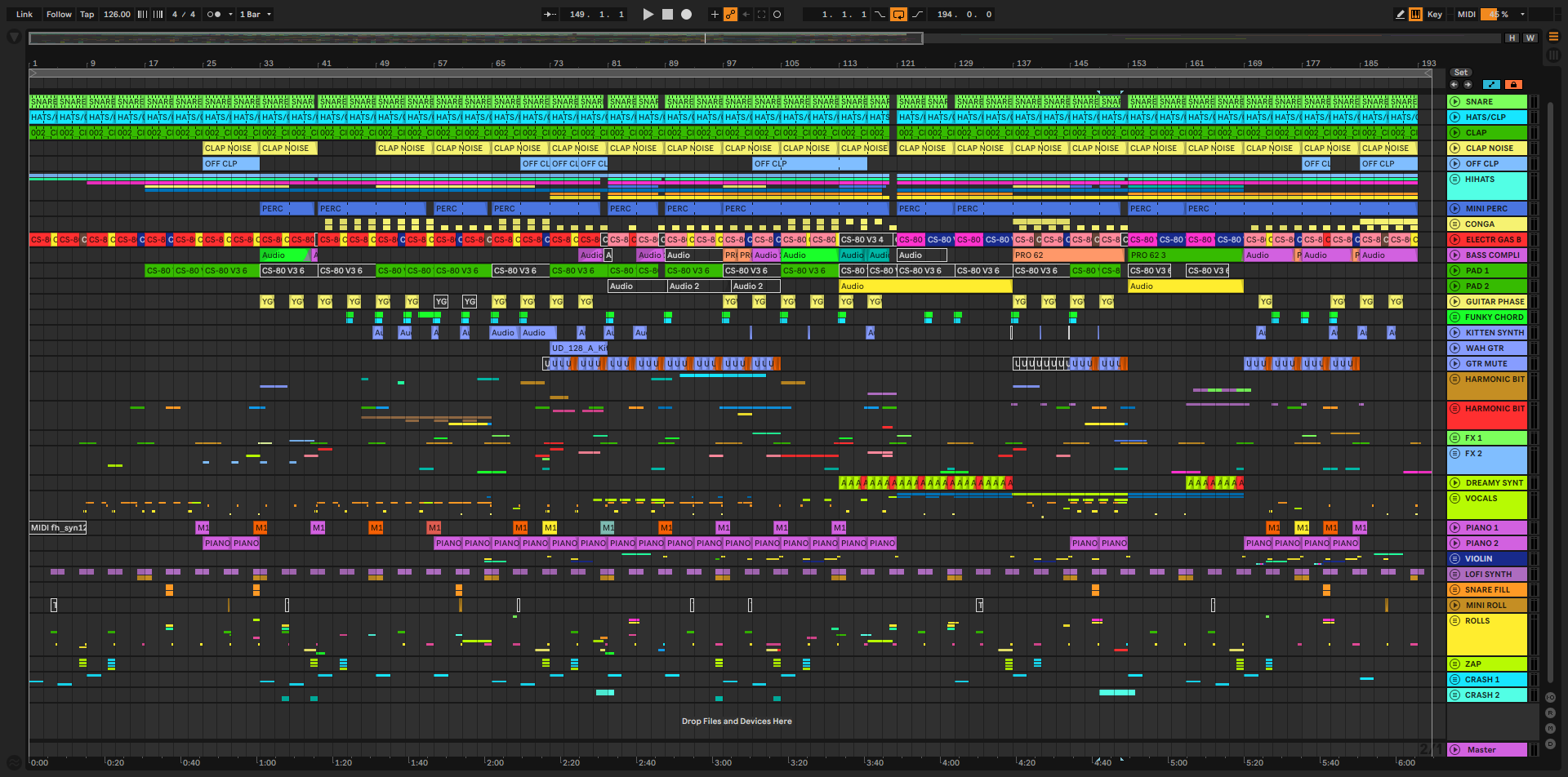 The main bass in Endless High was built around the “Electr Gas Bass” preset, which already provided a solid foundation with enough texture to cut through the mix. In certain sections that needed extra tension, this sound was layered with my analogue Prophet-6 to add grit and warmth, giving the bass a more analogue feel. Multiple bass patterns were played throughout the track rather than looping a single idea, with expression used to introduce small variations between sections. To keep everything controlled and consistent, the bass was processed through two UAD compressors: an 1176 for fast peak control, followed by an LA-2A to smooth things out and add weight. Sidechain compression, triggered by a muted ghost kick, helped the bass lock tightly into the groove while leaving space for the low-end punch of the drums.