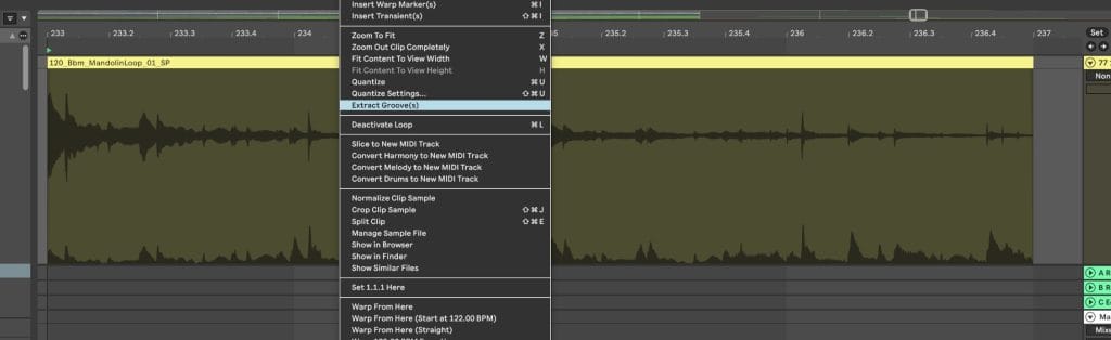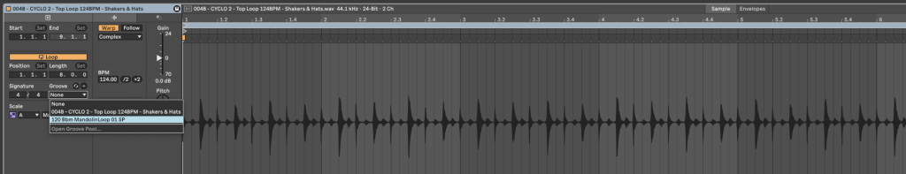 You can extract groove information from any audio loop and apply that timing shape to other clips. This allows you to create a unified rhythmic feel across a session, even when combining different instruments, samples or MIDI performances.