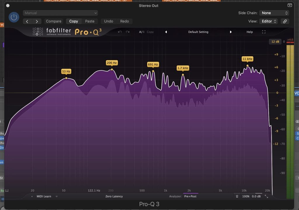 We used the factory EQ in Logic Pro X and other Fab-Filter EQ ‘s such as the Pro Q 4 EQ.
