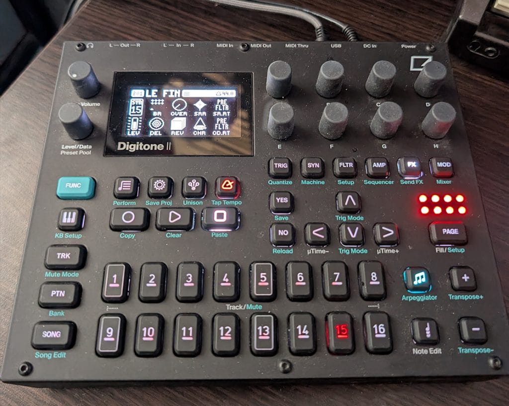 We also used Elektron’s Digitone II for creating nice sweeping effects and cool percussion-style sounds. This is another great synth that uses FM, so you can really dial in to whatever type of sound you want, whether it be a short transient style sound or a long sweeping sound.