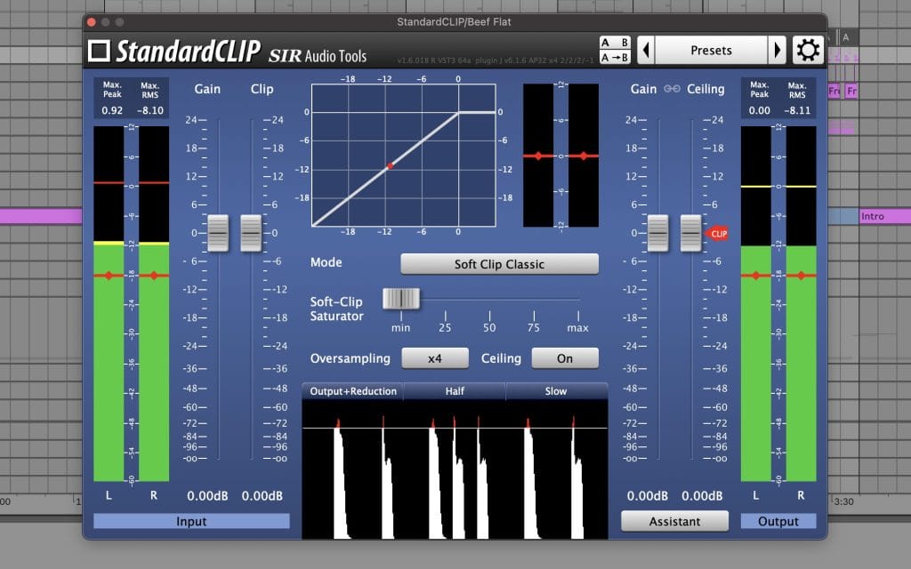 One thing you have to be careful with when using a clipper is distorting the low end. With basses I always have a separate sub these days so I can get away with clipping the mid range part of the bass without affecting the sub. With kicks I’ll sometimes use Pro-MB to compress the low end of the kick before going into StandardClip to prevent distortion.