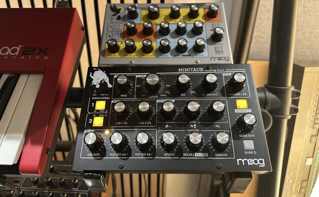 I think the first synth to talk about on this track is the Moog Minitaur. It’s a small, simple analogue mono synth that has all the classic Moog colours and that signature filter. I use it in a lot of my music.