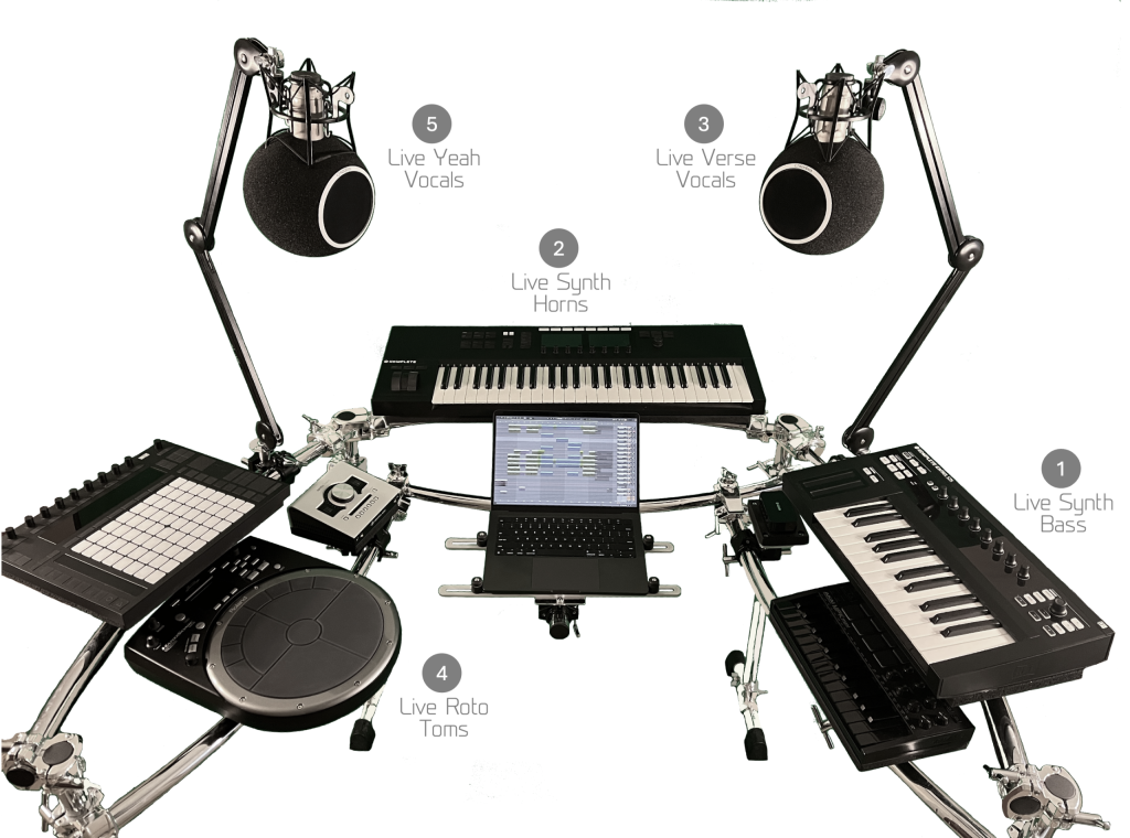 Putting everything together, please see YouTube: Twitch – Live Performance of the song, where what you see is what you hear in the song to be released.