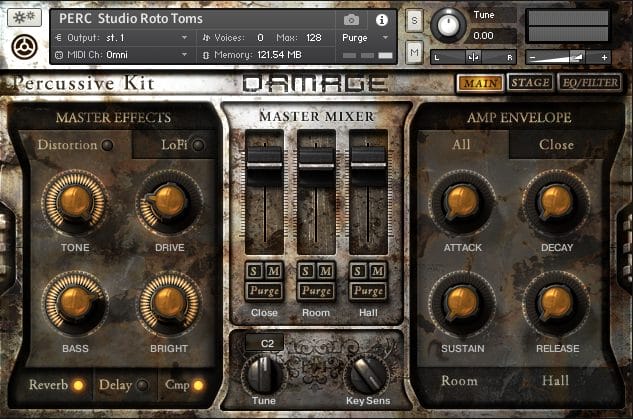 First, I had to close the gap on the digital instrument I am using to play the roto toms, the amazingly expressive Roland HandSonic HPD-20. Sorry Roland, but I had to turn off your internal sound engine for this expression. So, I created a User Kit to map each of the drum pads to specific MIDI notes within the Damage Plugin. I could not believe how expressive this digital instrument became with such a simple setup. Please see the Hot Takes below for my thoughts on advancing the fusion of human and digital instrument expressions. And to see and hear the expressiveness of this digital instrument, check out Twitch – Live Drum Solo.