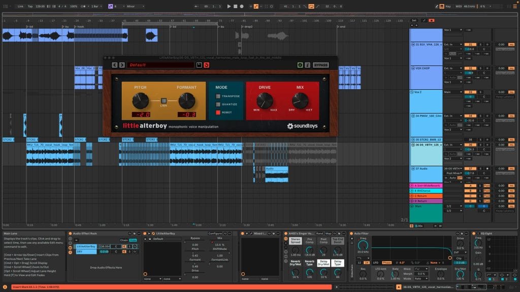 Little Alter Boy is a go to for changing vocal keys or adding depth/edge to a vocal. We used it on multiple of our vocal channels to move the vocal keys lower or to add a robotic sound. This plugin is great because we sometimes get such unexpected results changing the tone of a vocal or even using it on an instrument.