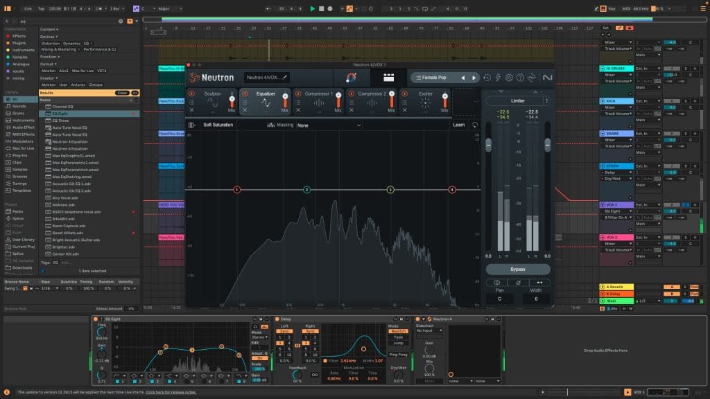 Neutron is great because it can analyze the audio and will mix accordingly. It has many built in presets that you can choose per instrument. We used the Female Pop vocal preset because it sounded really bright and clean which was a priority for us.