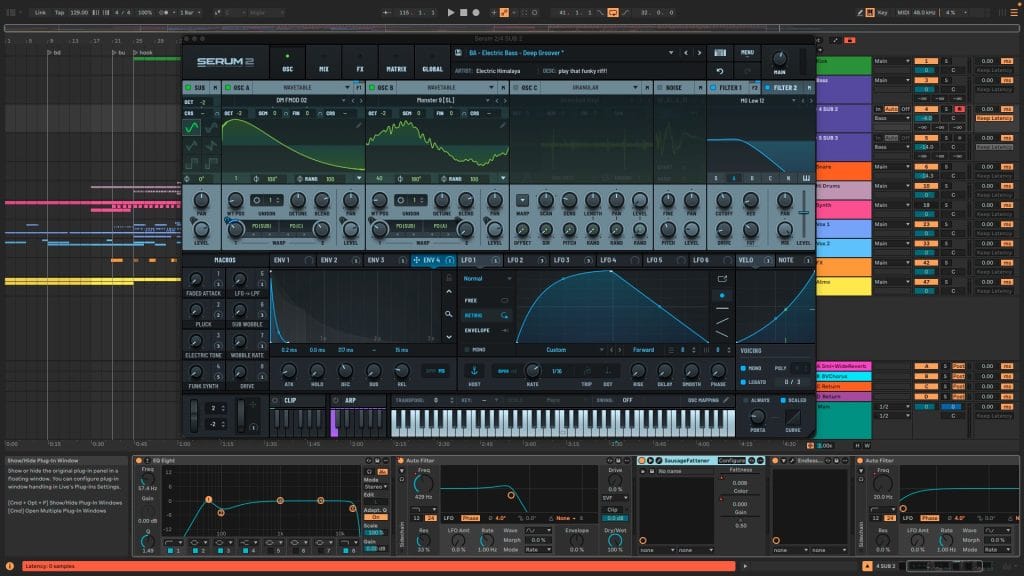 We used the preset Electric Bass Deep Groover but made it less gritty while still keeping the aggressive edge by changing the wavetables, filters, and removing some of the LFO destinations. To add dynamic as the track flows, we automated 2 auto filters to allow the bass to still be present with aggression in the breakdowns and buildups. We also added Sausage Fattener with automation to add some grit and energy. When making a bass club track, the low end is very important. We both love how much you can automate with Serum to create a really interesting bassline that continues to build and have varying moments with tension.
