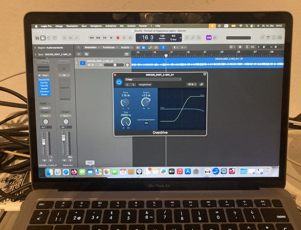In my studio, the Overdrive adds a subtle, rough edge to my already raw tracks. I usually use the “Crispy” preset and change the knobs to fit each track perfectly. On some already fat-sounding album tracks, I kept it very subtle. You might ask: why don’t I use other professional and more popular overdrive plugins? My answer is simple: I like to keep things straightforward. I don’t want to get lost in a jungle of plugins. I’m not chasing the “perfect” sound. I record the track, add the basic tools in Logic, listen on different monitors and speakers over the next few days, and then decide whether to keep it or scrap it. And honestly, I believe the built-in plugins in Logic Pro are more than enough, at least for my needs.