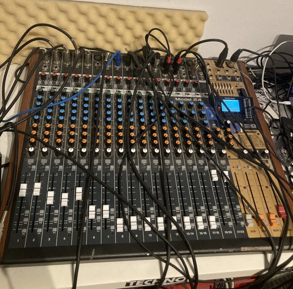 Since I no longer produce and arrange my tracks in a DAW, but record them live and directly with hardware, the studio mixer has become a vital part of my setup: It’s an instrument in its own right. On the Tascam Model 24, I control the inputs from my synths, drum machines, samplers, and effects units, occasionally adding a touch of the onboard reverb to a channel. I rely on my ears, my experience, and above all, my intuition. When recording live, I also like to keep a certain amount of chaos. My approach feels like open-heart surgery. Yes, that’s my spirit.