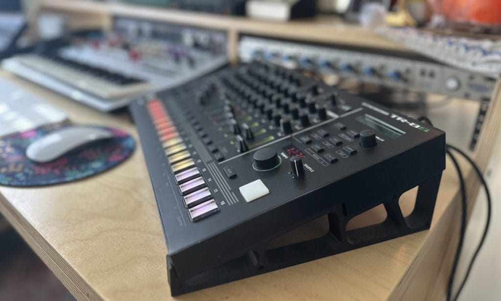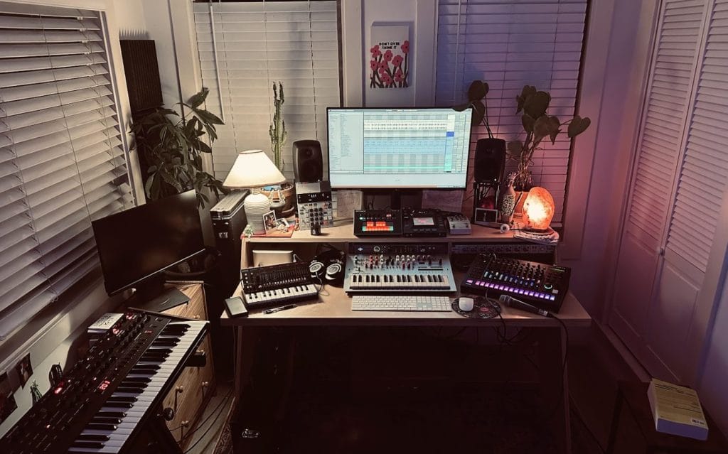 For “Postcards from the Club,” I used the Roland TR-8S drum machine extensively. The TR-8S features a bunch of classic Roland drum machine sounds (including the 808, 909, 707, 727, etc.). The TR-8S, however, goes far beyond just drum hits. There are synth one-shots, vocal chops, FX, and more. You can also load in some of your favorite samples. This machine has a super intuitive sequencer that you can chain together to form longer patterns as well. I love how easy and accessible it is to jam on and get some ideas out.