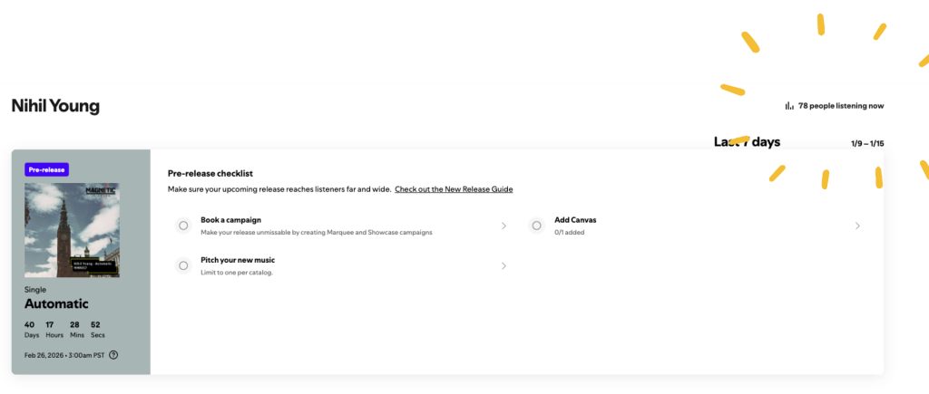 Spotify for Artists is valuable because it lets you see streaming behavior in context, then convert that context into decisions you can act on. It has a lot of numbers, but the goal stays simple: you want the dashboard to tell you what listeners did after they found your track, then you want to use that information to decide what to push next.