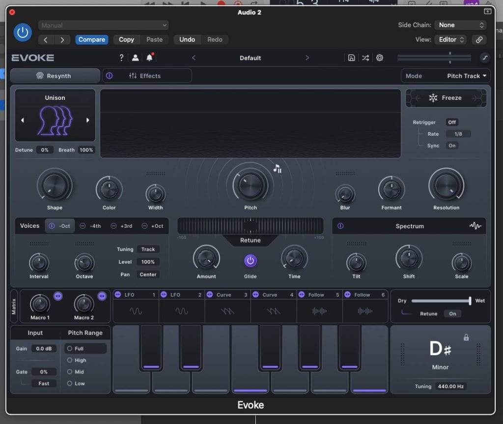 There are also a ton of presets that Evoke ships with that all serve as great starting points, ranging from simple autotune to absurd, robotic choruses.