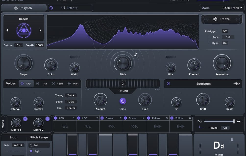 Below the retune is where you can set up macros and up to six modulators, as well as determining much of the original signal is actually impacted by the processing. You can also still use the retune engine while no other processing is on, which is a nice touch.