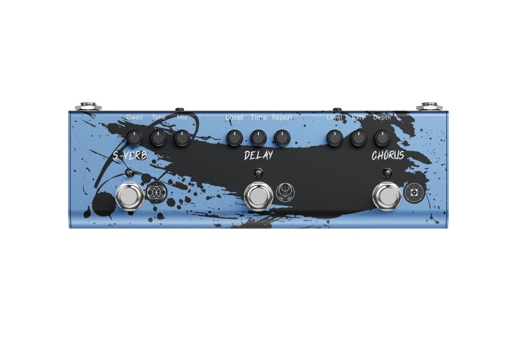 The Dimension Weaver takes a very different approach. Finished in blue, it combines S-VERB, CHORUS, and DELAY into a single pedal, again with dedicated controls for each section.