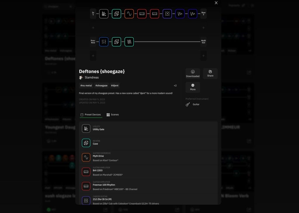 And you can do all that with two separate instances per cab module, allowing endless tweaking and tone shaping. IF that’s still not enough, by connecting to your Cloud account, you can download even more user-generated presets, alongside the company’s flagship plugins, which include rig emulations from artists like John Mayer, Tom Morello, Tim Henson, and many others. At the time of this writing, the latest plugins aren’t available on-unit yet, but will be soon.