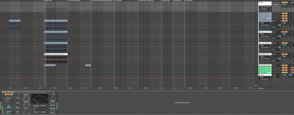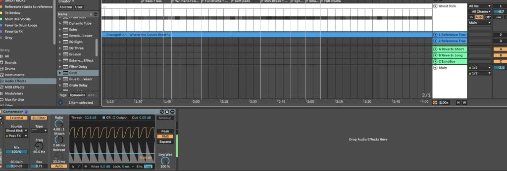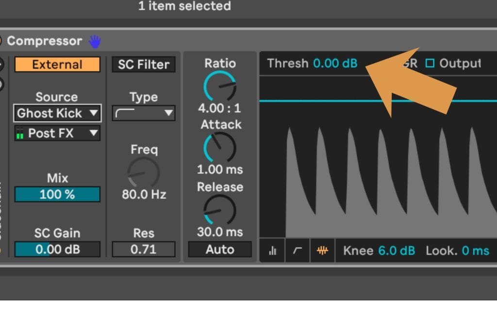 Start by putting Ableton’s Compressor on the track you want to get quieter when something else happens, which is usually a bass, synth, or percussion bus.