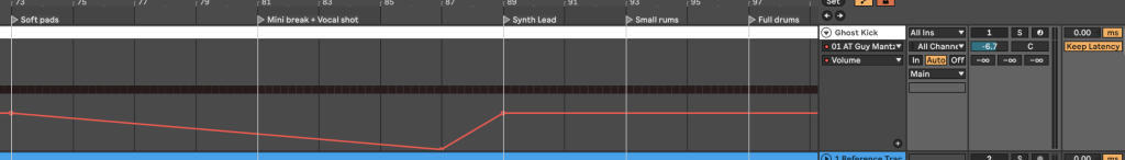 A ghost kick removes that variability. The sidechain trigger stays consistent across the entire project, which means the groove remains stable while you audition different kicks. It also opens up automation possibilities since you can ride the ghost kick level over time, which effectively lets you automate sidechain intensity as the arrangement evolves.